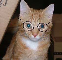 Last night when Joe came upstairs after watching the Braves game, I asked what the cats were doing. “Julius is reading a magazine, and AJ is balancing his checkbook. He looks so cute with his glasses on,” he replied.