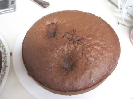 there is a funny story that goes along with the cake. i had the two cakes covered with dish towels while they cooled so the cats wouldn’t get into them. i went home from work on friday to check on them, and after pulling the towel off the first saw two large paw prints in the middle of the cake. someone (a.k.a. dizzy) decided it would be fun to walk on the cake. it was hilarious. our cats always have to get into something. my family thought it was hilarious too. my parents have six cats and six dogs, so they’re used to animals getting into things.