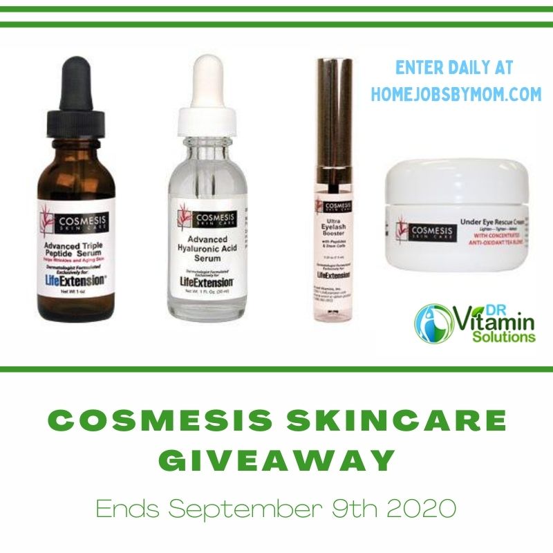 One entrant will be selected by the entry form to win two Cosmesis Skincare Products. Open for entry in the United States, 18 years and older from 08/17/20 thru 9/9/20. No purchase necessary. Void where prohibited. This giveaway is in no way endorsed, affiliated, or associated with Facebook, Twitter, or any other social media networking site. The winner will have 48 hours to respond to notification email to claim their prize or a new winner will be selected. Once a winner is drawn and confirmed, the name will be announced on the Rafflecopter form. DR Vitamin Solutions will be responsible for sending the winners their prize.