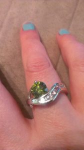 I had a voucher leftover from a previous daily deal, so I redeemed it and my candle arrived today. I burned it for two hours and was able to (fairly) easily dig the ring out. I had my fingers crossed for a solitaire. While I didn’t get that, I think my ring is absolutely GORGEOUS. See for yourself!